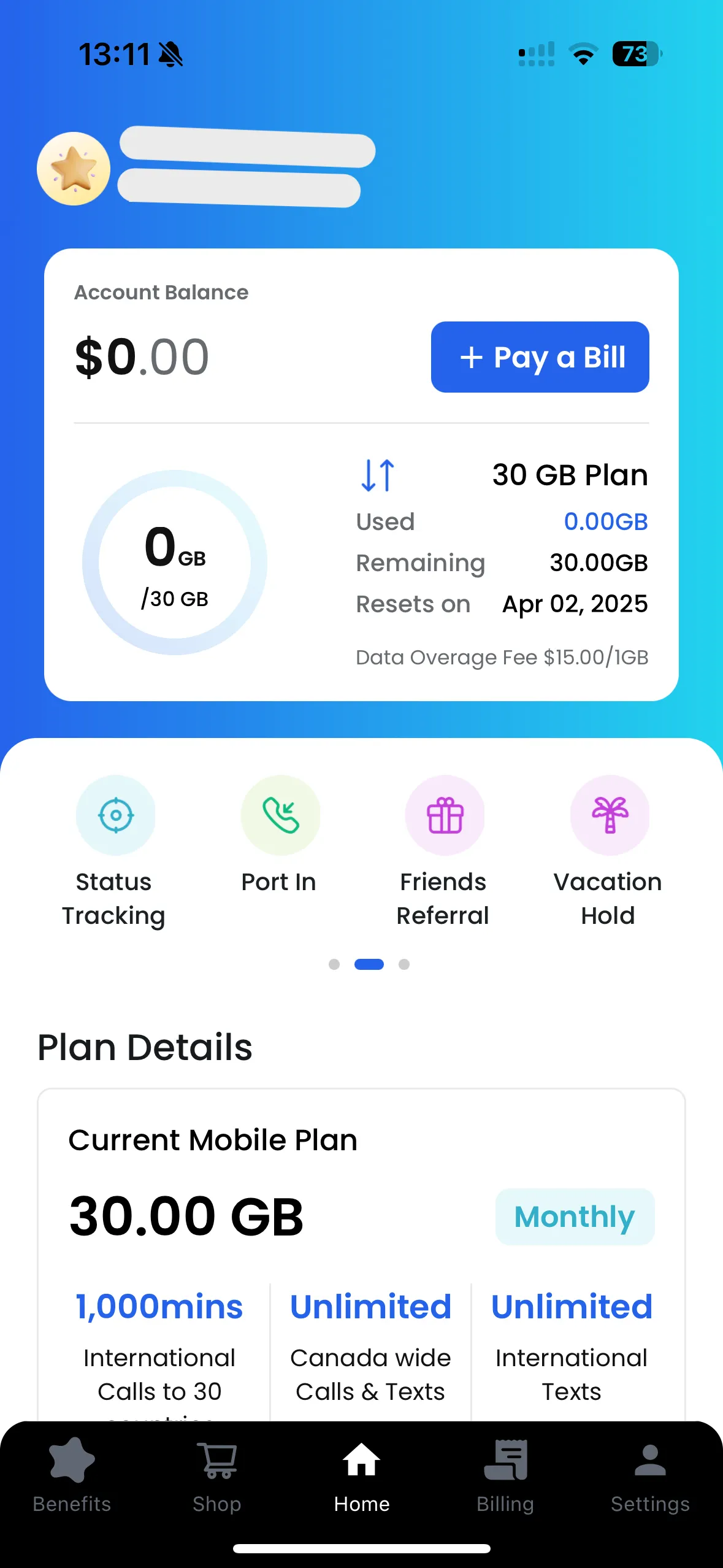マンスリープランをご利用の場合、1GBのデータ超過につき$15+taxの超過料金が発生致します。