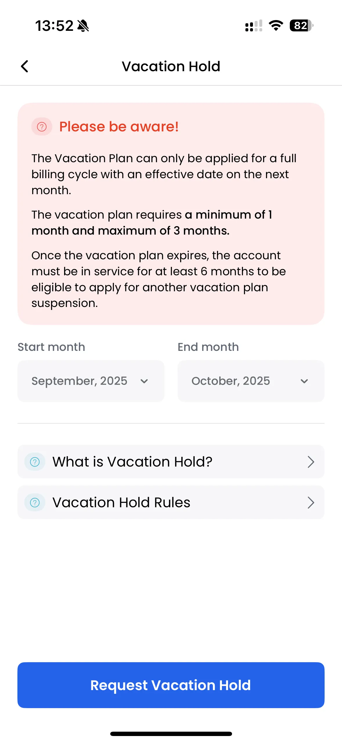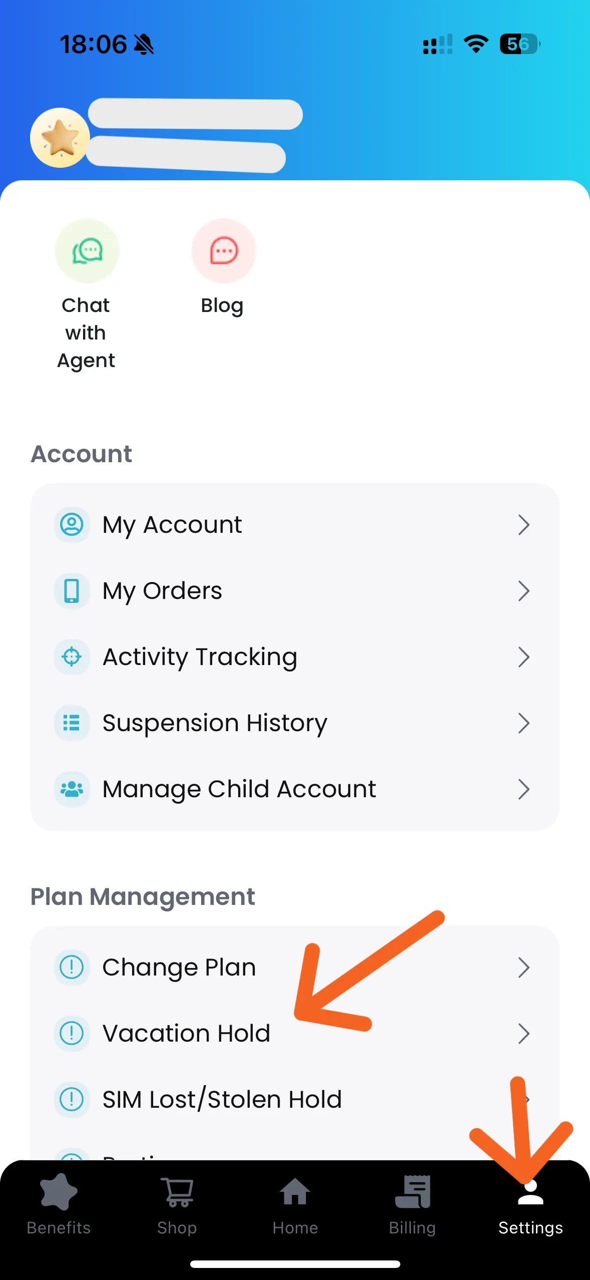 解約ではなく休止プランご希望の場合はWebsiteまたはアプリのオンラインアカウントからお申込みください。