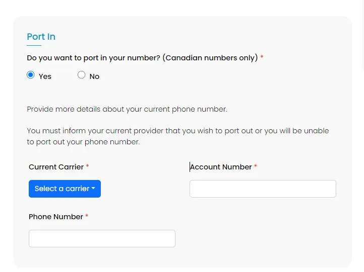 ステップ3 - 電話番号、現在のプロバイダー名、およびアカウント番号を入力してください。