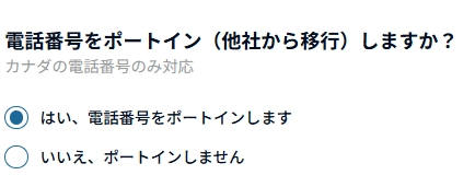 個人情報を入力する際、以下の質問が表示されます: 電話番号をポートインしますか? この質問には「はい」を選択してください。