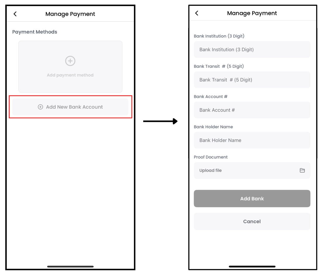 To update your bank account information, please make changes between the 26th of the current month and the 12th of the following month.