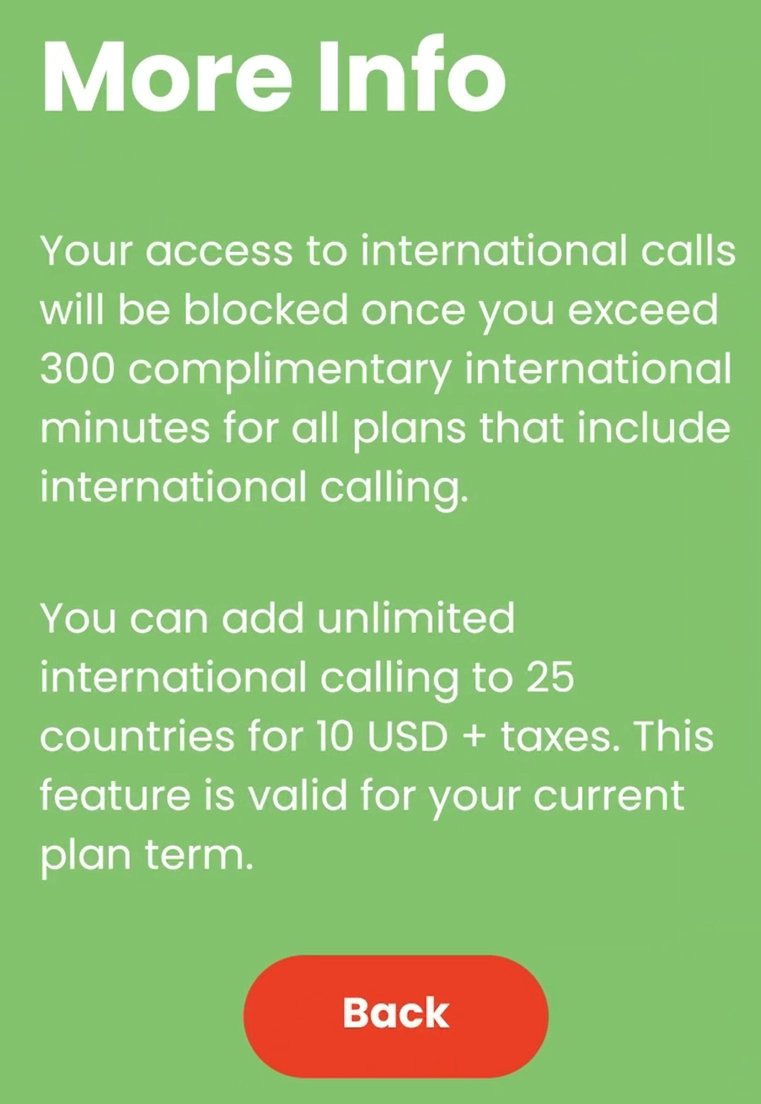 *30-day plans have the option of international calling ( 500 minutes for $5 / Unlimited minutes for $10)