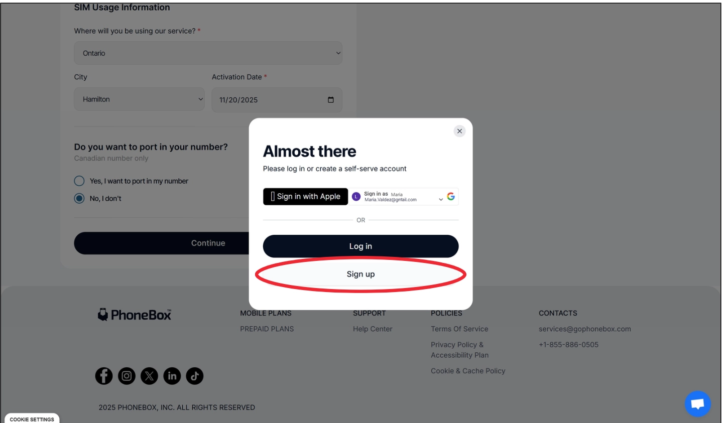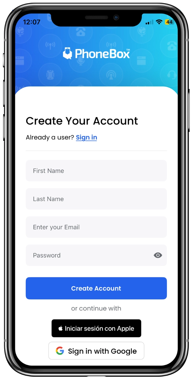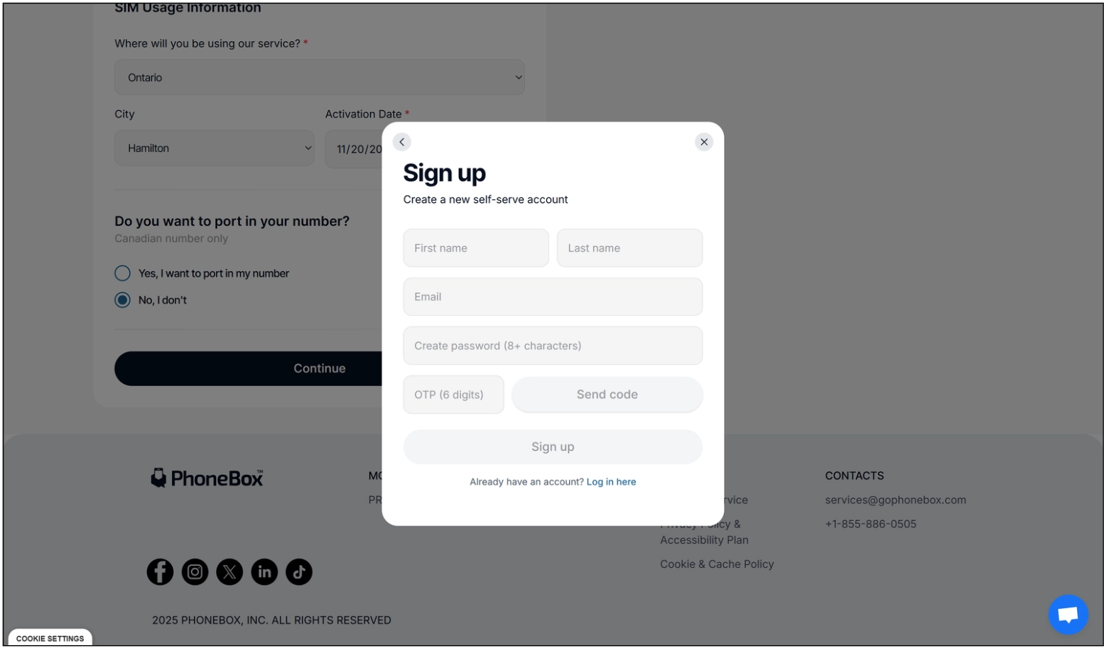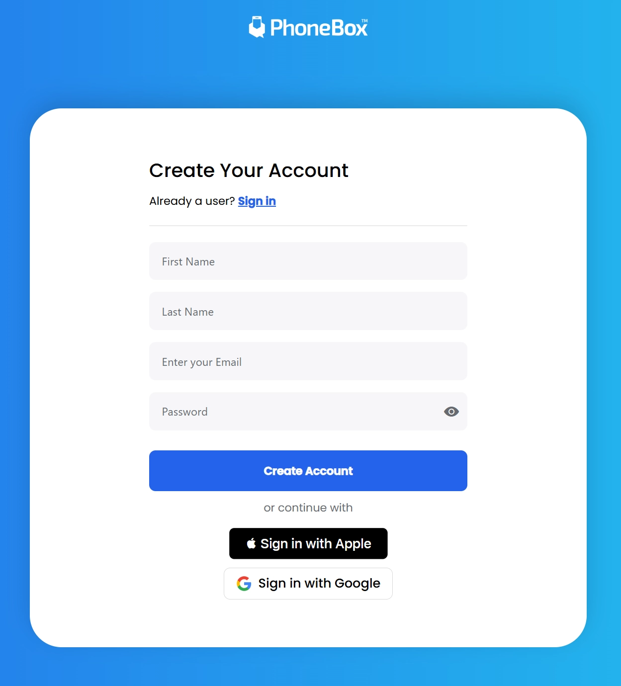 If you’re new to PhoneBox, you’ll be able to create your account during your purchase.