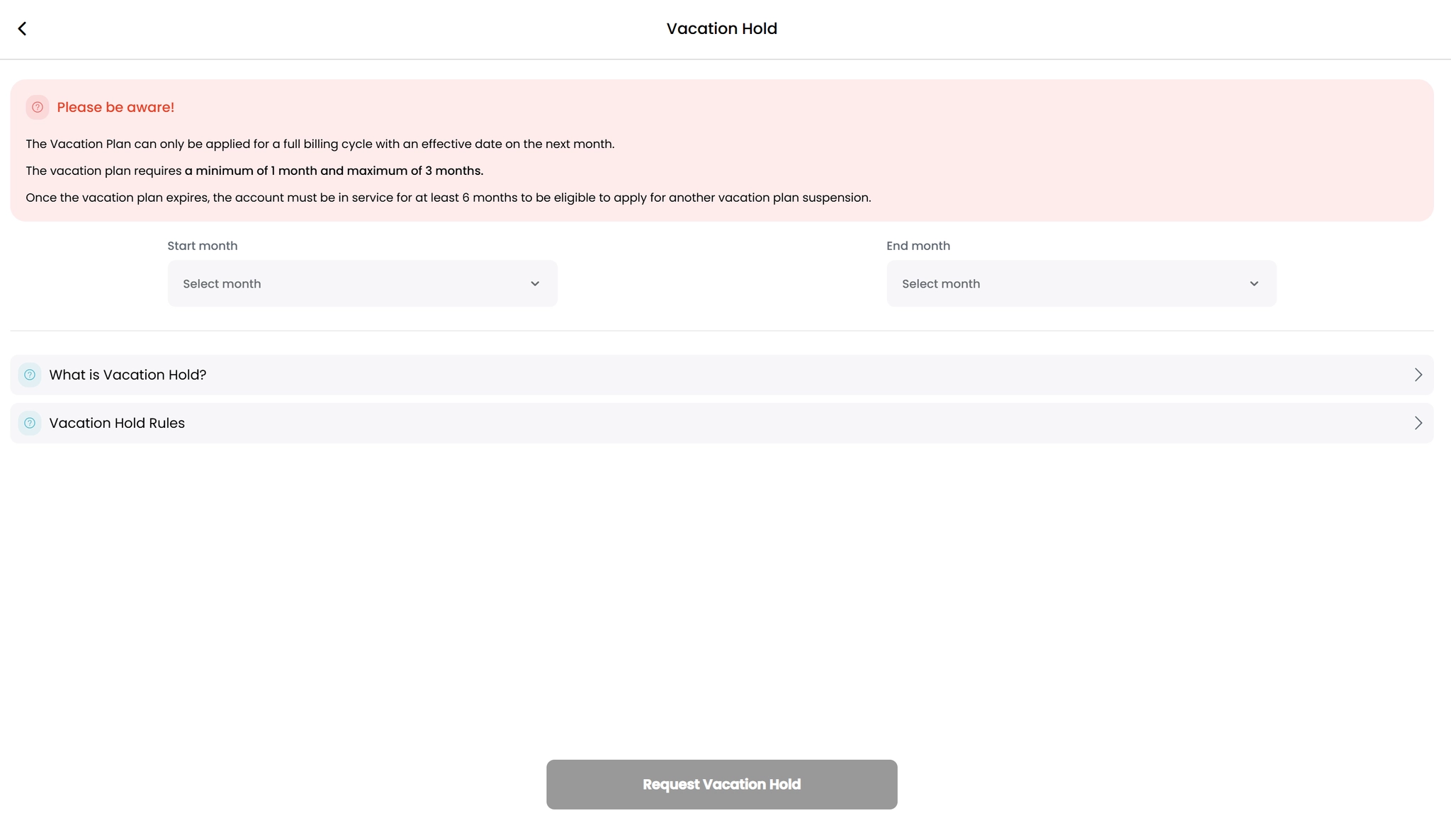 ※ After ending a Vacation Plan, you cannot set it up again for 6 months.