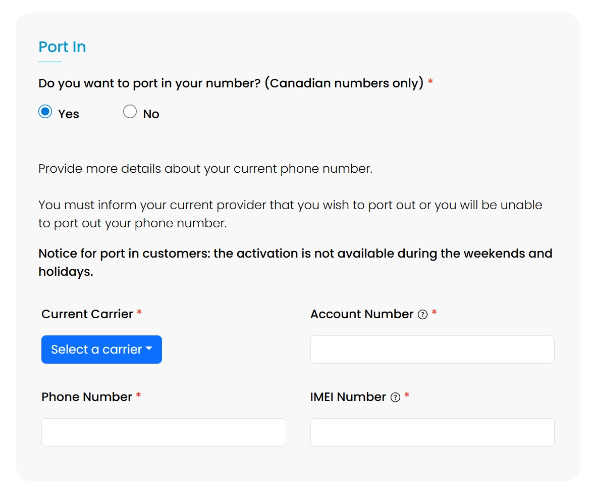 ※ The SMS confirmation and port-in process may take 1–3 business days (excluding weekends and holidays).