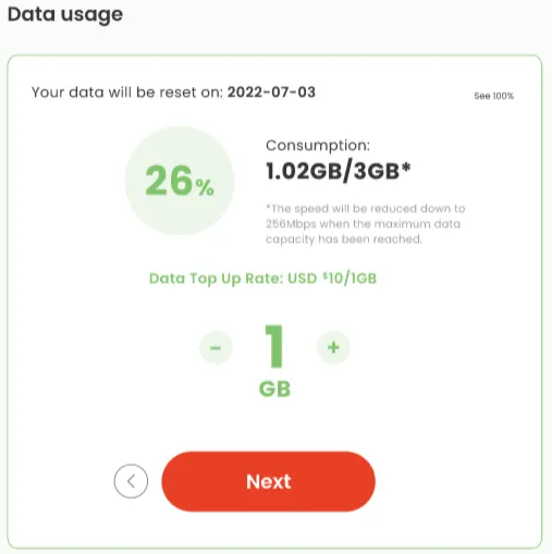 ਮੌਜੂਦਾ ਮਿਆਦ ਵਿੱਚ 4G LTE ਸਪੀਡ ਨਾਲ ਸਾਡੀ ਸੇਵਾ ਦੀ ਵਰਤੋਂ ਕਰਨ ਲਈ, ਗਾਹਕਾਂ ਨੂੰ ਡੇਟਾ ਨੂੰ ਟਾਪ-ਅੱਪ ਕਰਨ ਦੀ ਲੋੜ ਹੋਵੇਗੀ: