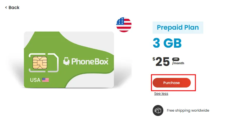 다시 한번 요금제를 확인하시고 Purchase 버튼을 눌러주세요.