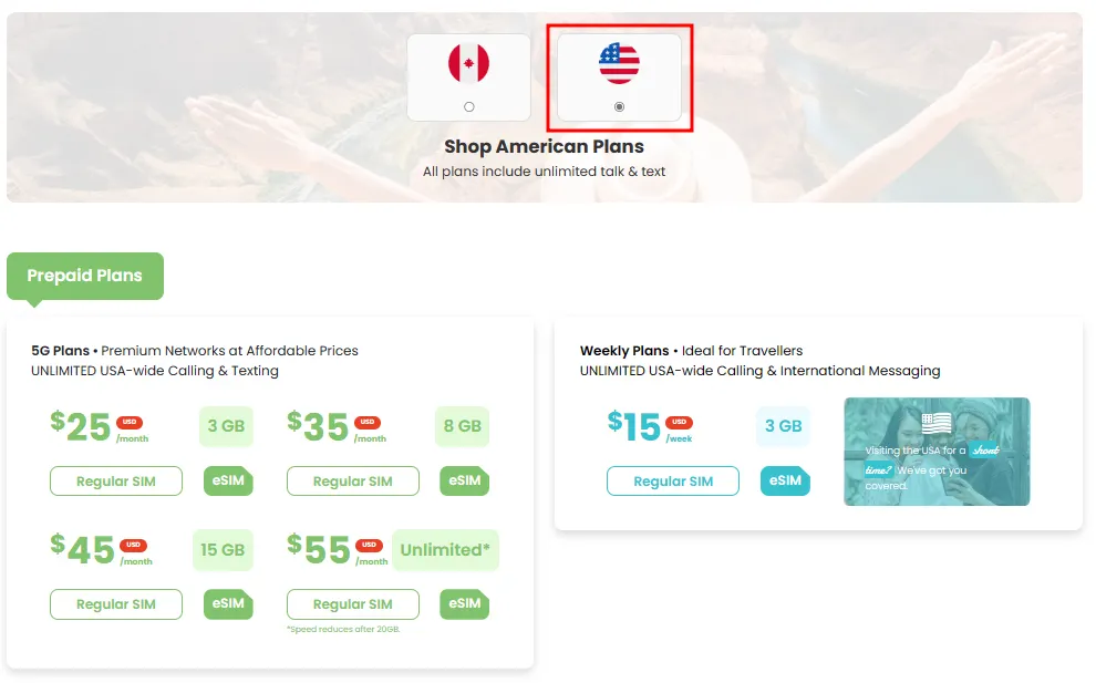 요금제 화면이 나오면 미국 국기를 클릭해주세요.